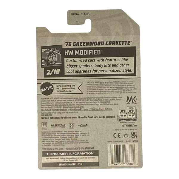 The 76 Greenwood Corvette is a stunning representation of automotive excellence and design. This limited edition model captures the essence of a classic American sports car, bringing nostalgia and excitement to both collectors and enthusiasts. Featuring a sleek body sculpted for optimal performance and a vibrant color scheme, it stands as an icon in the Hot Wheels lineup. The 76 Greenwood Corvette isn't just a toy; it's a tribute to a legendary era of racing.