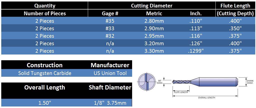 Thank you for browsing my items. We specialize in top quality 1/8" Shank Solid Tungsten Carbide Cutting tools: Drill and Router (endmill) bits. All our bits are from the industry leading manufacturer Union Tool USA. We are dedicated to providing a wide variety of bits and bit sets at great prices.
