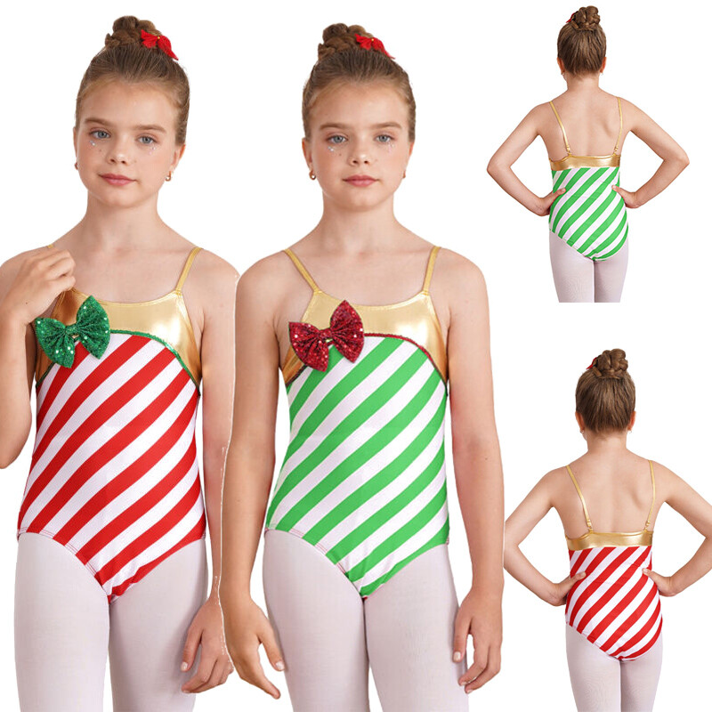 Girls Christmas Elf Outfits Tutu Dress Short Puff Sleeve Leotard with Hat Party