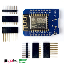 Beigelegt sind drei passende Stiftleisten, die eingelötet werden müssen, um das Board z.B. mit einem Breadboard zu verbinden.