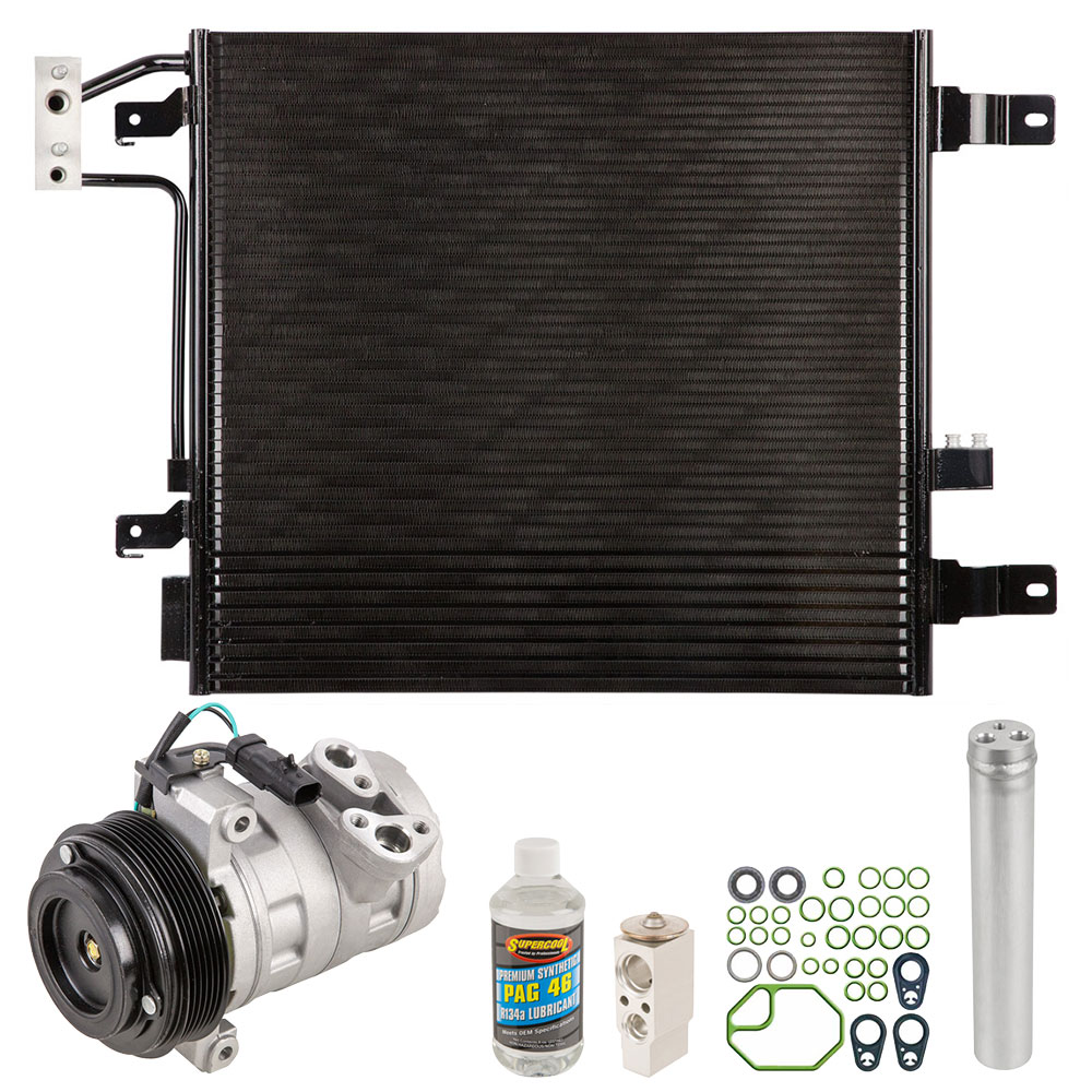This 6 piece Complete AC Kit includes a brand new AC compressor, condenser, accumulator/drier, expansion device, a bottle of AC compressor oil and a pack of the correct o-rings for your system to prevent leaks. This kit is designed to include all of the right parts to make the repair process easier and save you money.