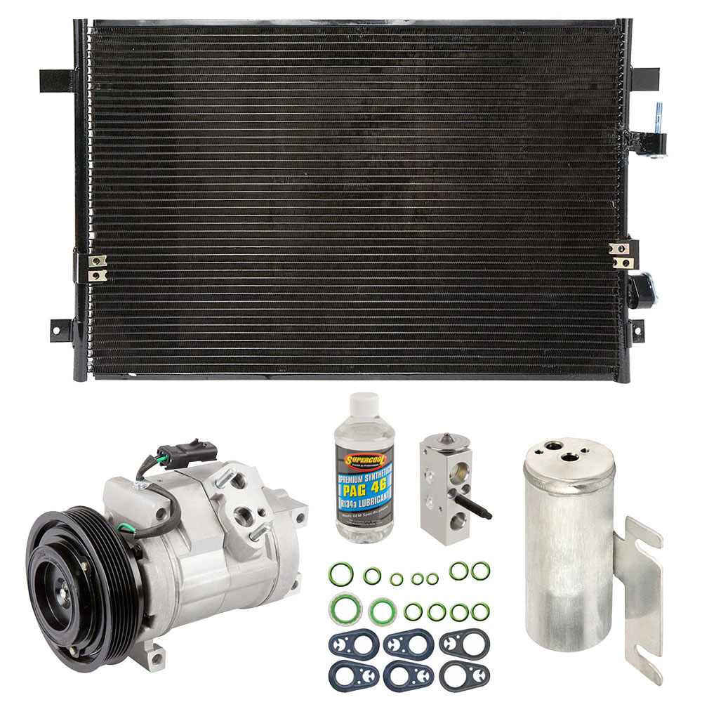 This 6 piece Complete AC Kit includes a brand new AC compressor, condenser, accumulator/drier, expansion device, a bottle of AC compressor oil and a pack of the correct o-rings for your system to prevent leaks. This kit is designed to include all of the right parts to make the repair process easier and save you money.