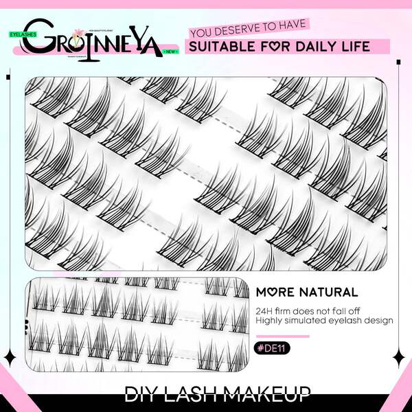 Say goodbye to stiff, unnatural false lashes. GROINNEYA DIY Lash Clusters are designed to help you create soft, seamless lash looks that match your personal style. Whether you’re a beginner or a beauty expert, these multi-style clusters make it easy to craft everything from subtle, everyday lashes to bold, dramatic designs.