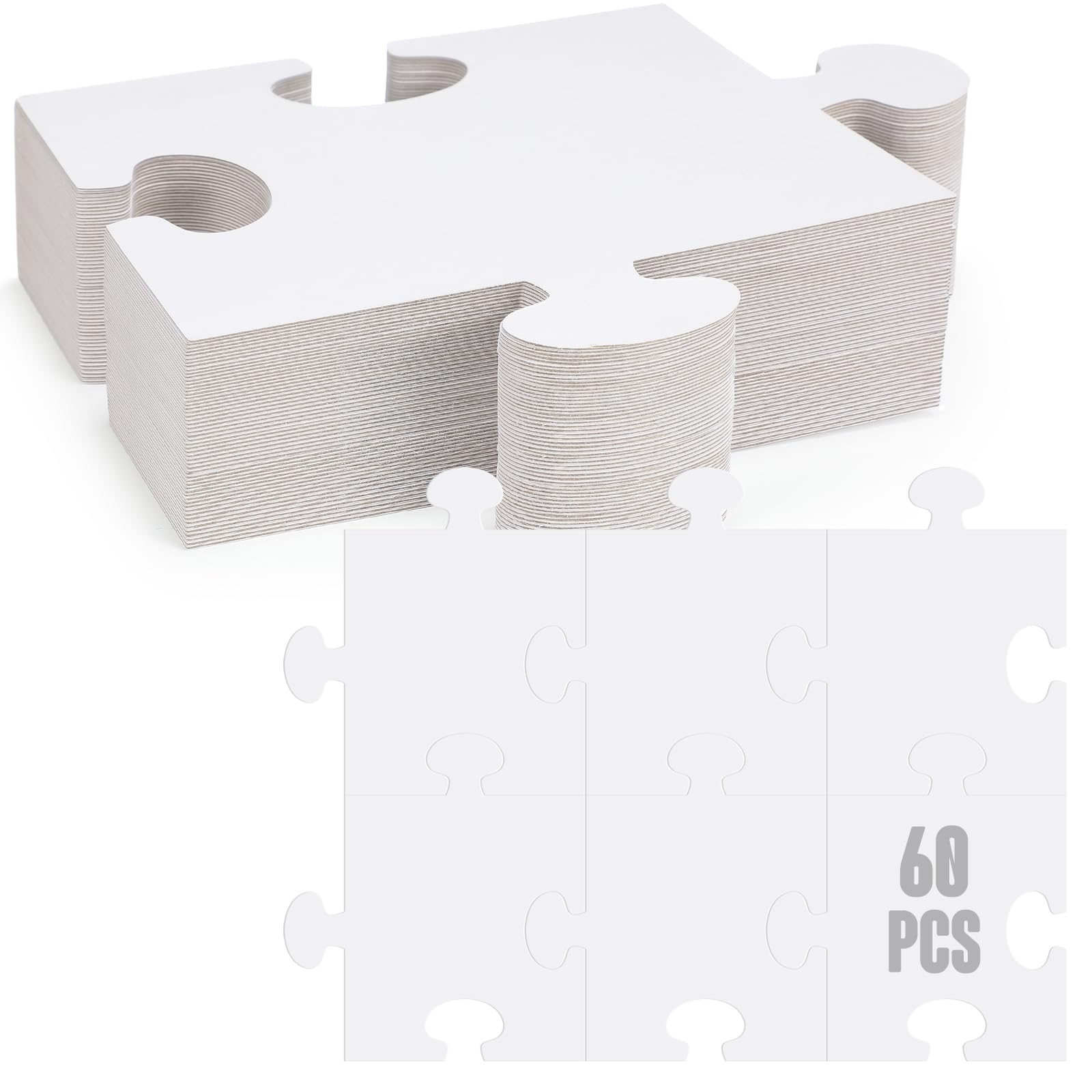 Sonwyoung 60 Pcs Large White Blank Cardboard Puzzles to Draw on Make Your Own Jigsaw Puzzle Pieces Giant Double Puzzle Blank White Papers for Kids Adult DIY Arts and Crafts Projects (8 x 9 Inch)