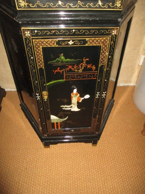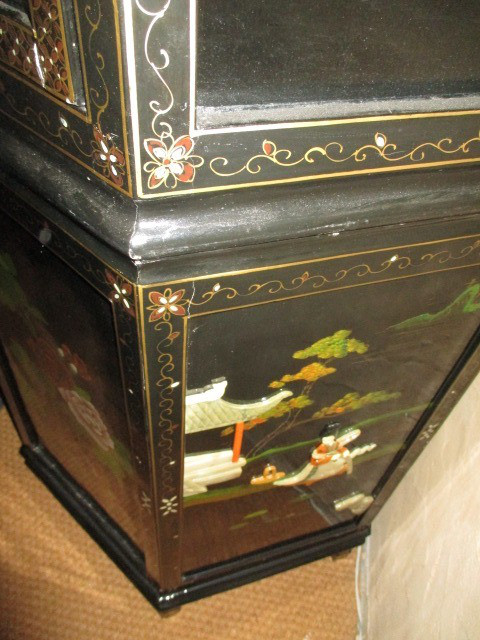 Schwarz mit schönen Mustern. Die Fächer unten teilweise mit schönen Halbedelsteinen besetzt