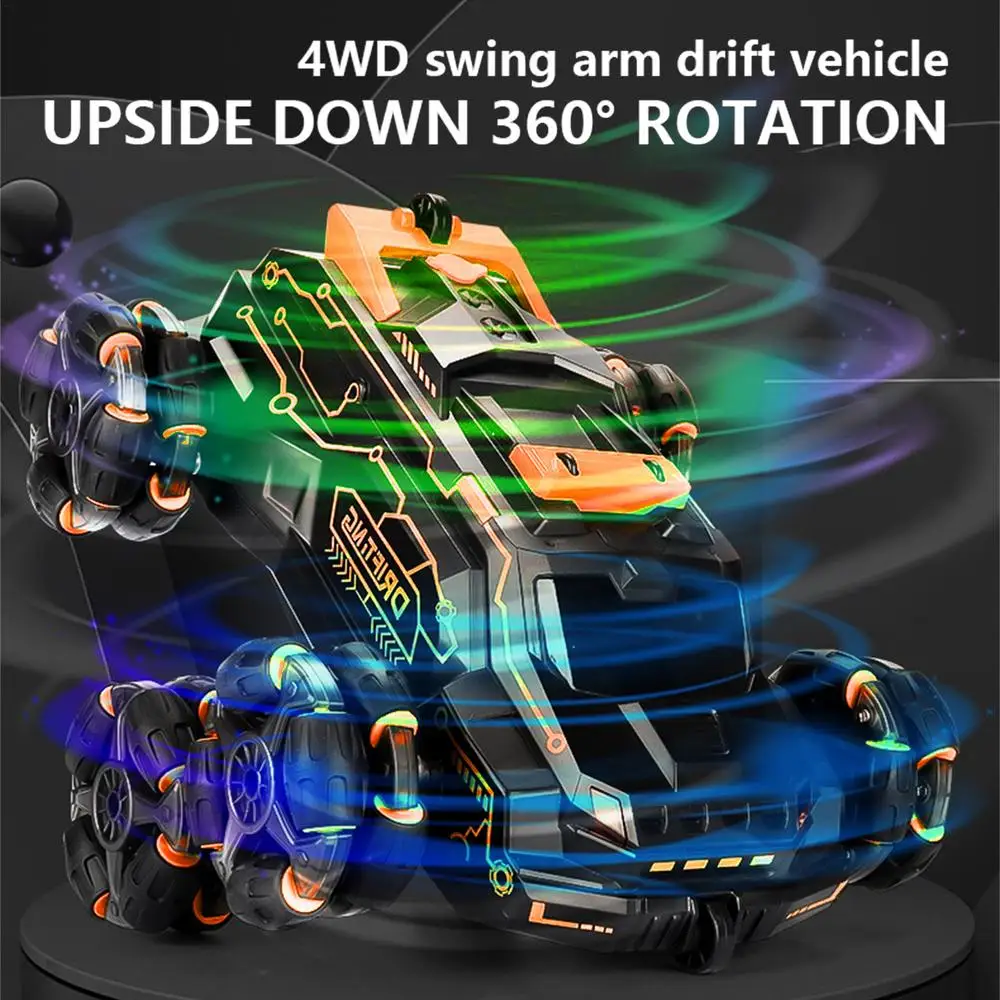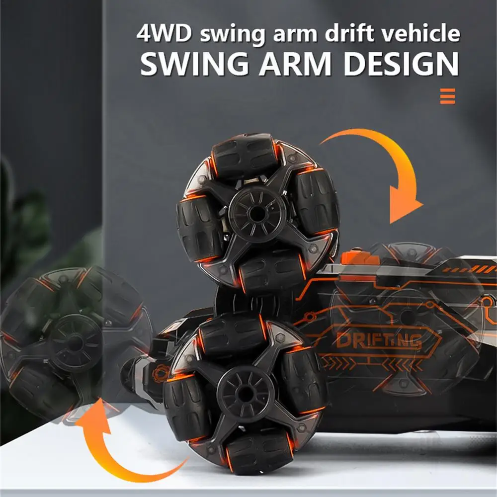 2. Unique Design: This RC Stunt Car is made with a 2.4GHz interference-free control frequency. Enables multiple stunt cars to race together at the same time. The remote control distance is about 50 meters.
