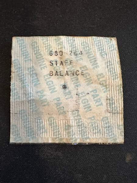 Elgin Factory Balance Staff for 8/0s grade 680, 681, 683, 683 movements and perhaps others as well, factory catalog No. 6589, Elgin refill no. 680-264, new in envelope. See images for further details. I likely have several of these so the one you get may differ slightly from the images. I specialize is hard to find watch parts so I usually have whatever you might need and all watch parts are unconditionally guaranteed. Images do an adequate job of representing the item.