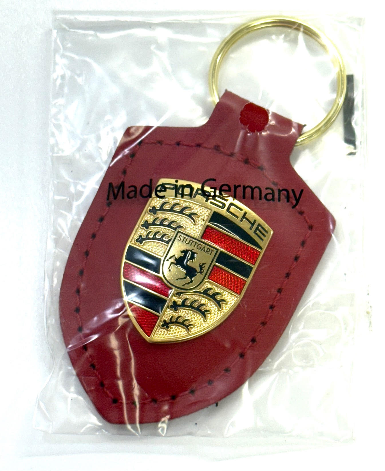 1 x NOUVEAU porte-clés en cuir rouge Porsche authentique.