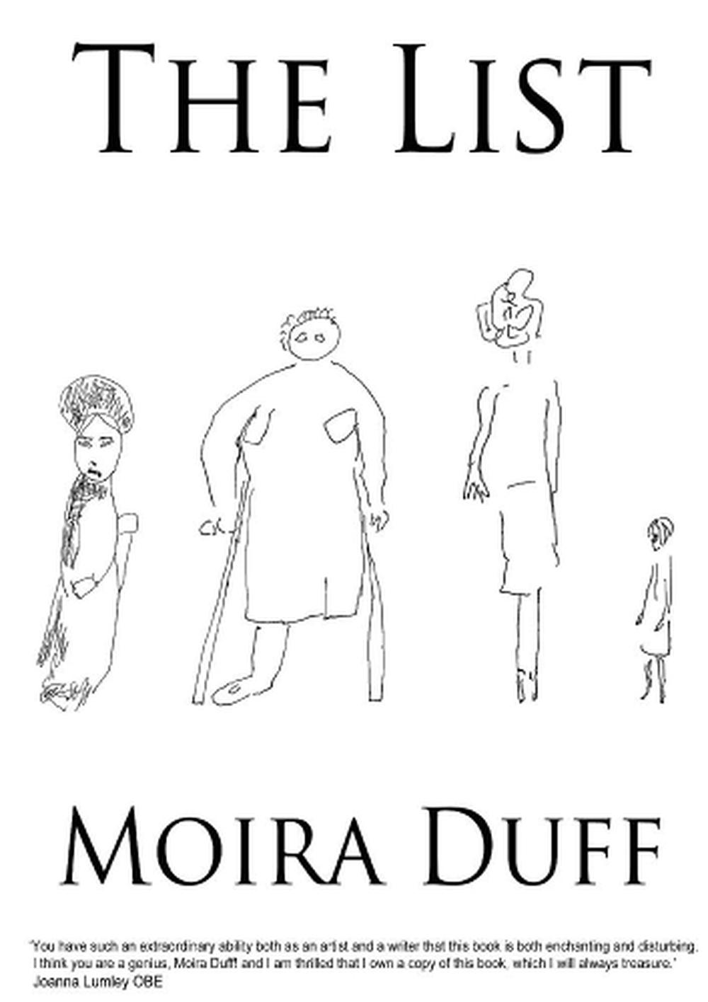 Following the death of her son in World War 1, Granny Ross moves from the influence of her North of Scotland church to Edinburgh. Here, her beliefs, in the form of a list laying out Right and Wrong, begin to permeate through the family, bringing about mental illness, physical abuse and suicide. The relationship between Betty, the narrator, and her mother, is the pivotal heart of the story. The List is semi-autobiographical and is delightfully illustrated by the author whose style encapsulates poetry, humour and brutal honesty. -------------------------------------- Joanna Lumley OBE says... 'You have such an extraordinary ability both as an artist and a writer that this book is both enchanting and disturbing. I think you are a genius Moira Duff! I am thrilled that I own a copy of this book which I will always treasure.' Joanna Lumley OBE