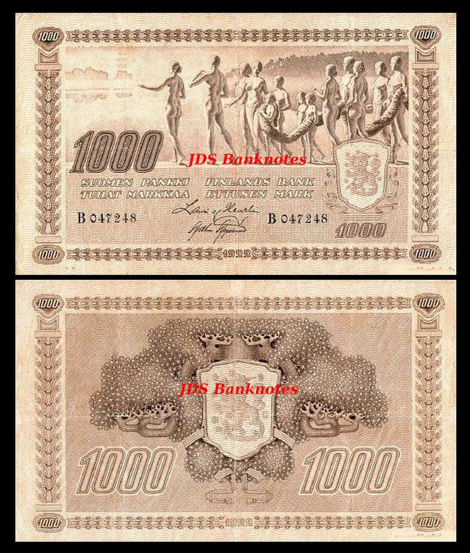1 000 Markkaa - Edition 1922 - P48 - Reproduction