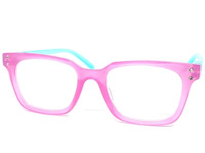 - COULEUR DU CADRE : Cadre rose avec des temples bleu clair