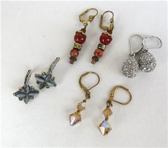 Lever Back Vintage Earrings Lot of 4 Pairs Various Shapes Sizes Women's Jewelry