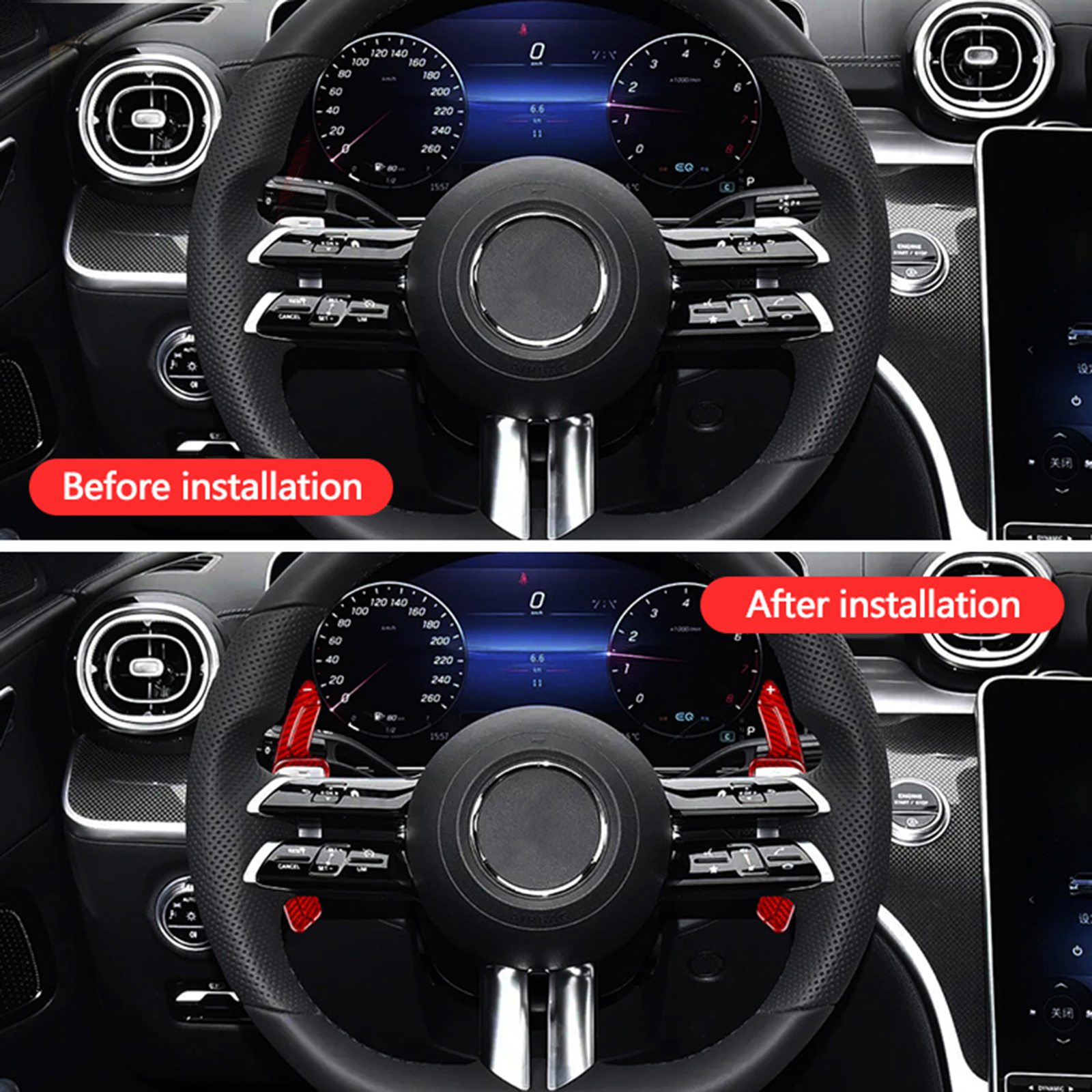 Easy to install, fit behind the original left/right paddle shifters using the included double-sided adhesive with no modifications required. No damage to your car.