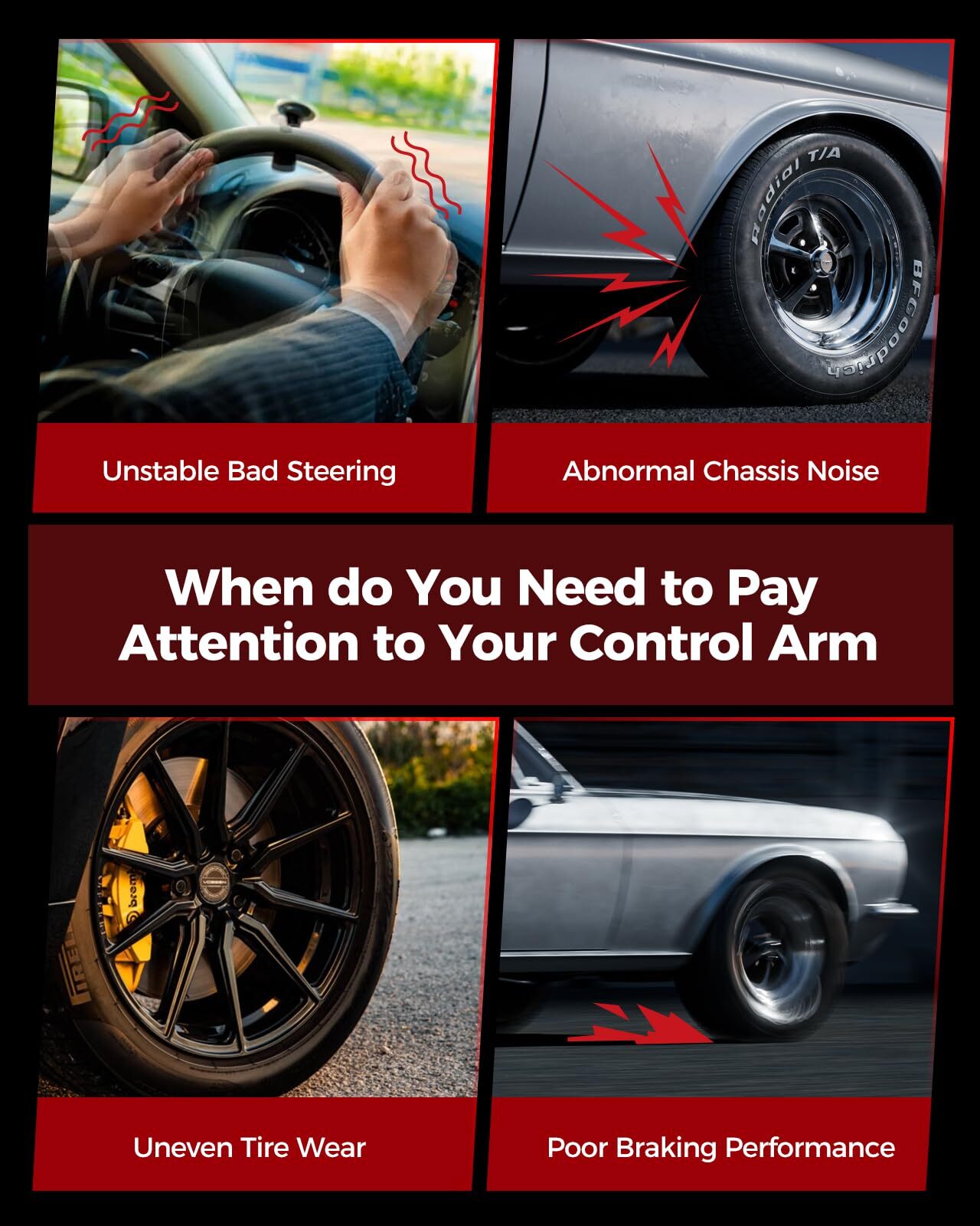 【Rigorous Testing Before Delivery】All control arm kit parts undergo 1,000 rigorous tests before delivery to ensure you receive high-performance, reliable automotive parts. Strict professional testing includes aging test, durability test, hardness test, etc.