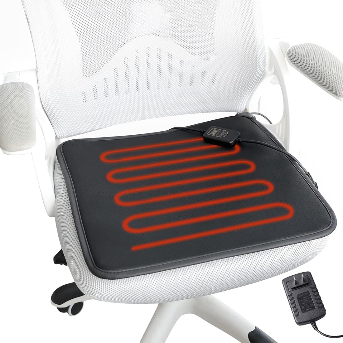 OLYDON Heated Pad for Office Chair, Square Leather Heating Pad with Auto Shut Off & Intelligence Temperature Controller, Universal Seat Warmer for Home, Office Chair (Black)