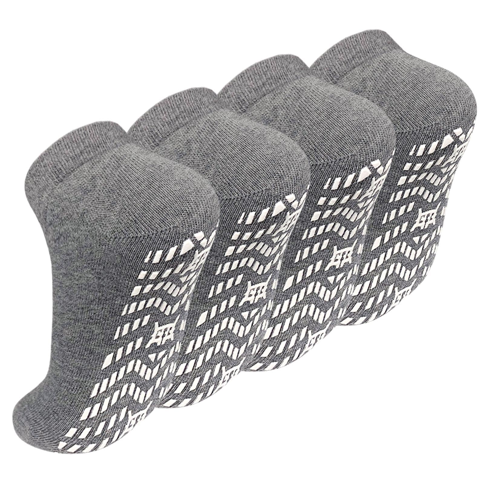 Non Slip Socks with Grip: Men's Grippy Non Skid Ankle Socks for Hospital Elderly Women Pilates Fitness 4 Pairs Grey-XL