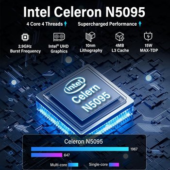 - 【Fanless Mini computer】This mini tablet equipped with Faster N5095 processor to prevent CPU/GPU throttling, it's a competent quad core fanless mini pc that does a decent job at business family and entertainment daily tasks, It's base operating frequency 2.0 GHz/s to 2.7GHz(4MB cache), draws under 10 watts of power, completely silent no noise, can Improve efficiency.