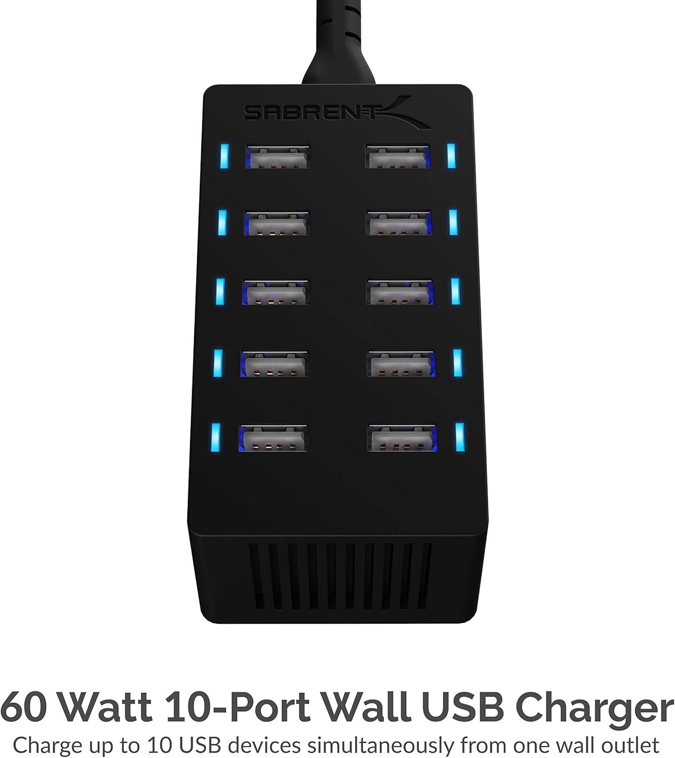 Compact 60W Family-Sized USB Charger with 10 Smart Ports - Charge All Devices