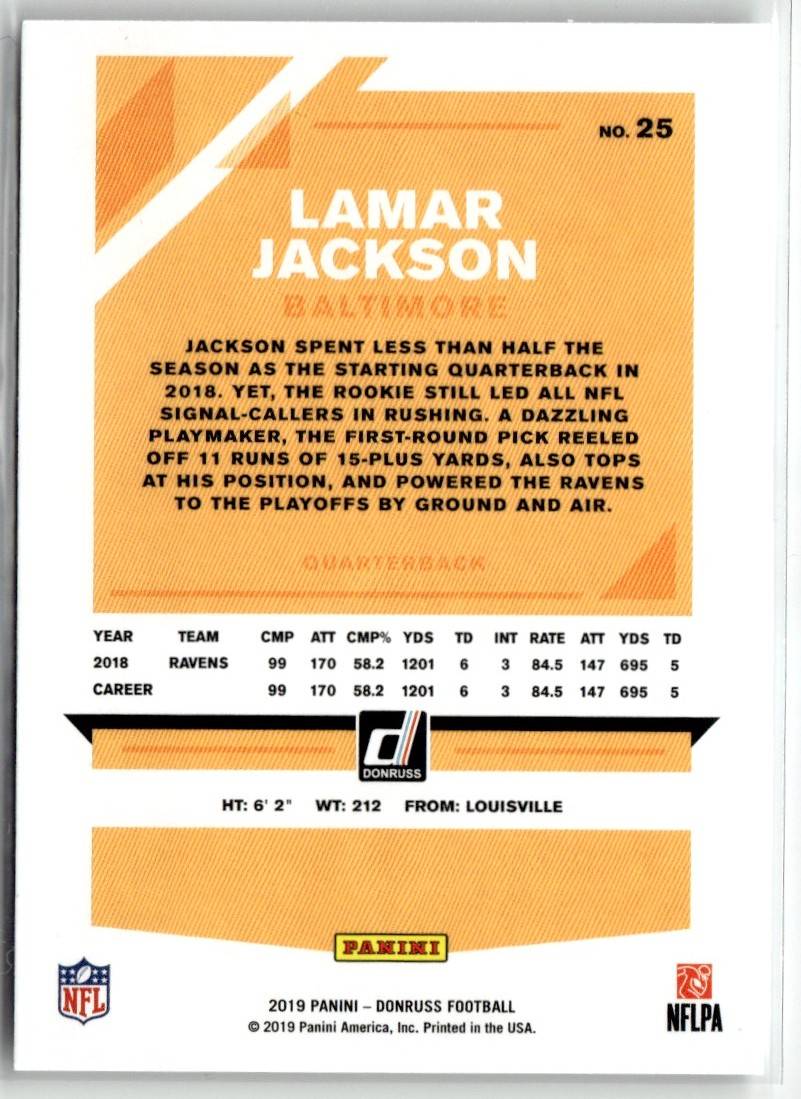 | Lamar Jackson 2019 Donruss Baltimore Ravens #25 | ||||||||||||||||