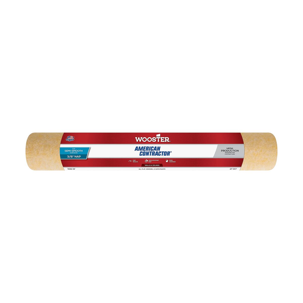 Includes (1) R362 18 inch Roller cover. 18" long roller cover with 3/8" Nap. First choice for value and performance for a production cover; excellent paint pickup and release. Green double-thick polypropylene core resists water, solvents and cracking. Made in the USA.