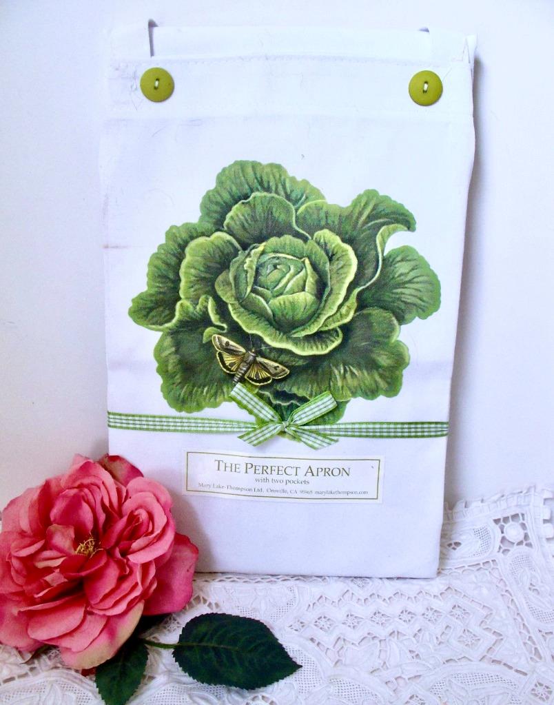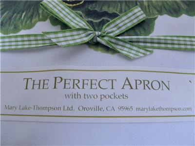 NEW Mary Lake Thompson "The Perfect Apron" White Canvas Green Cabbage Butterfly