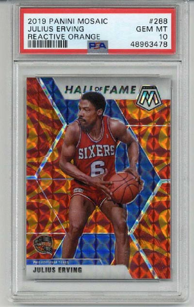 JULIUS ERVING 2019 PANINI MOSAIC REACTIVE ORANGE PSA 10 BASKETBALL CARD