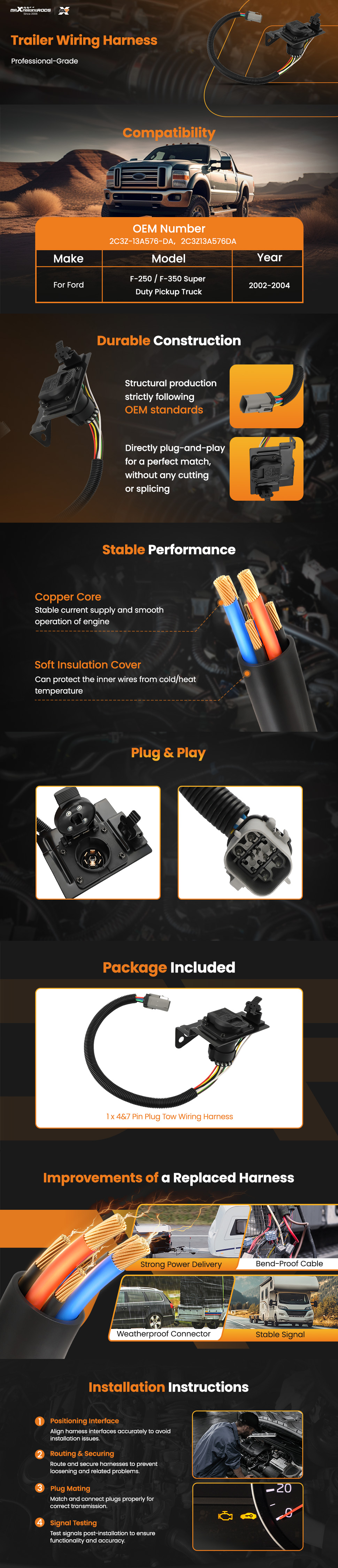 Package Includes: 1 x 4&7 Pin Plug Tow Wiring Harness (Showing as the picture)