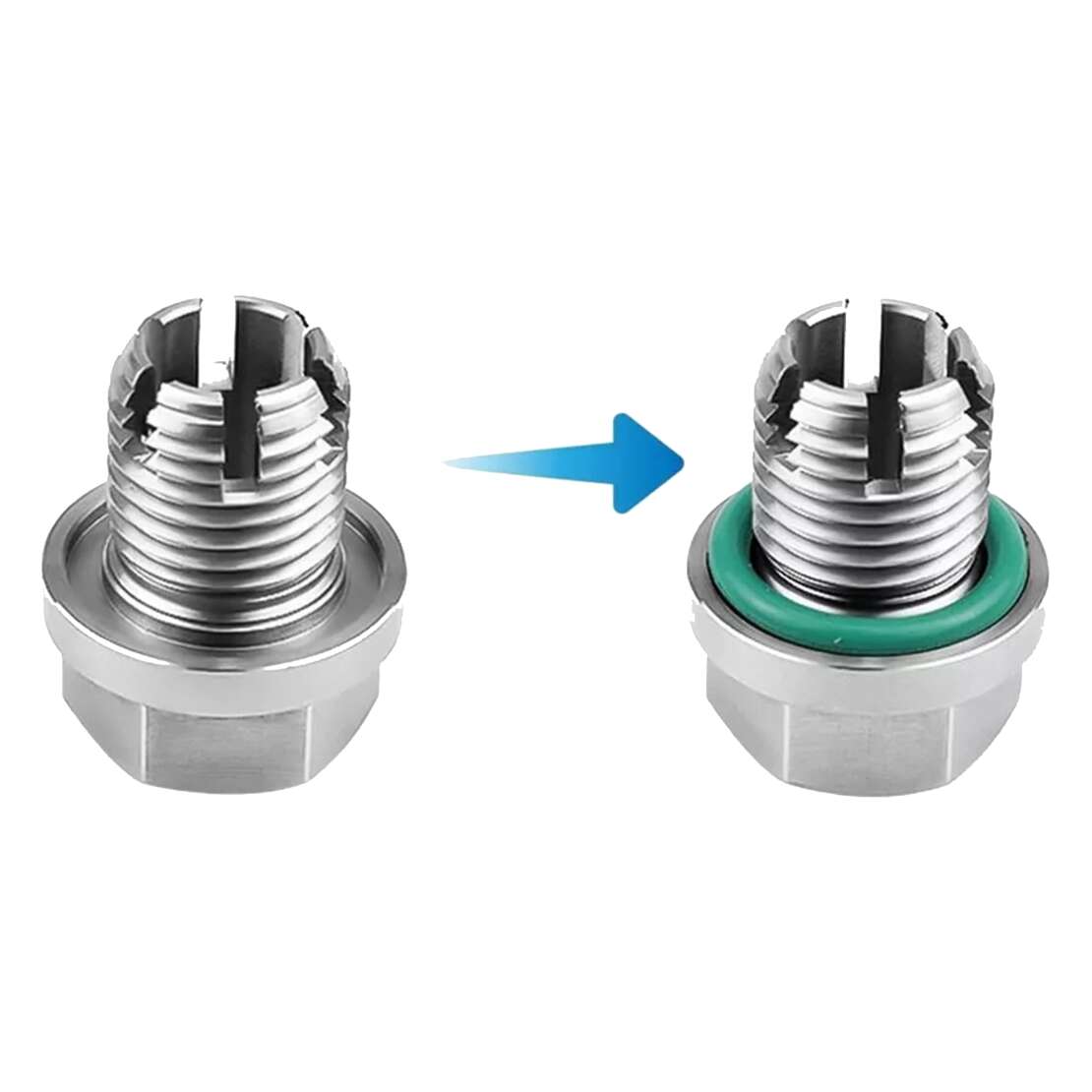 5) After installing the piggyback plug, screw in the small piggyback oil drain plug, and the installation is complete. (Note: When removing the small oil drain plug, please ensure that the large piggyback plug is in a fixed state)