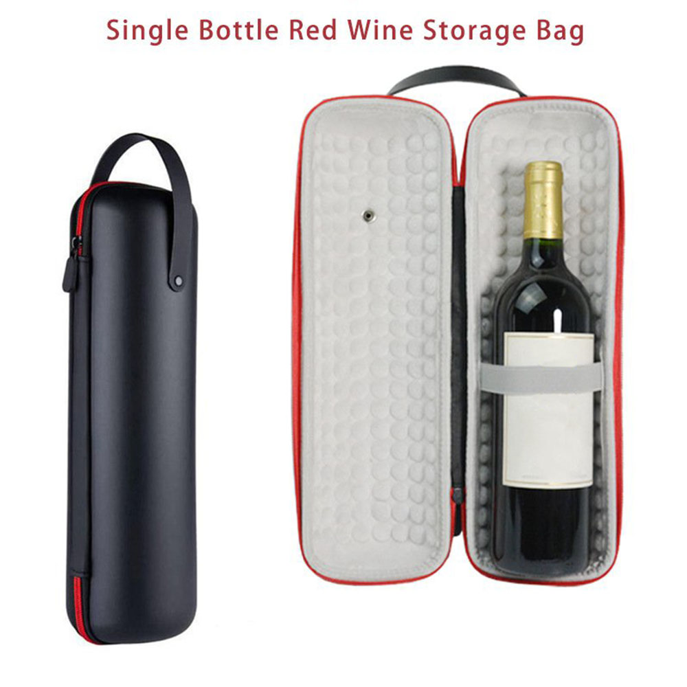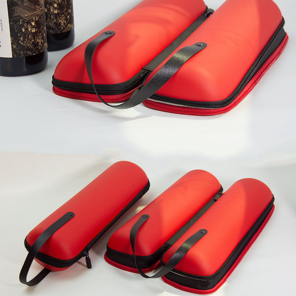 The portable wine bag is made of high quality EVA material with soft exterior texture Shockproof, dustproof, non-slip and drop-proof performance, non-slip and drop-proof performance. No need to worry about your wine being damaged. It is compact, lightweight, portable and fits easily into a backpack. The sturdy handle design allows you to carry it comfortably anywhere, anytime.