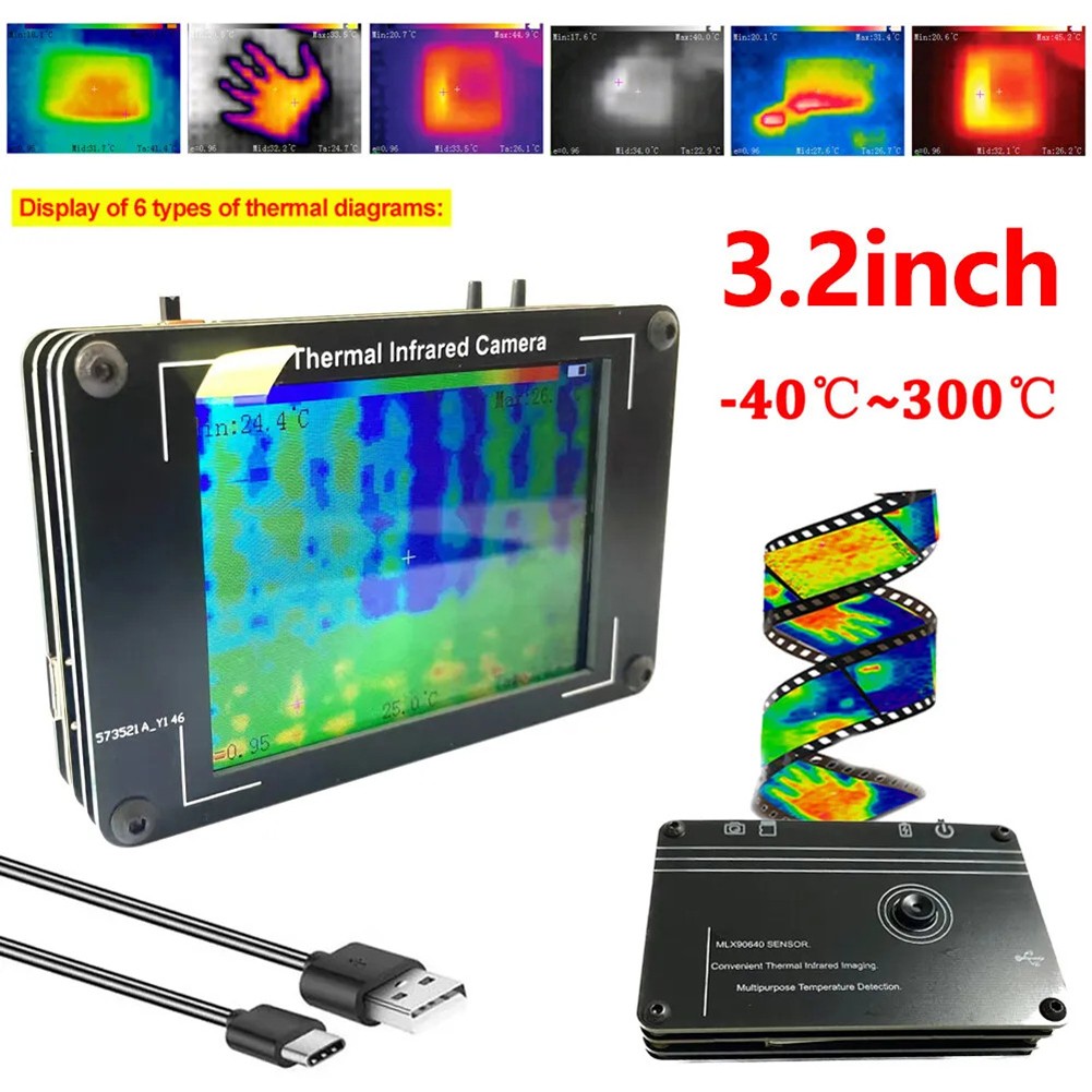 * This is a handheld multi-function thermal imager, compact and lightweight, equipped with a 3.2-inch TFT display, MLX90640 thermal infrared probe, powered by a lithium battery, can be used in various occasions, temperature data is clear at a glance, infrared imaging + temperature value display, it is an essential tool for home and industrial use.