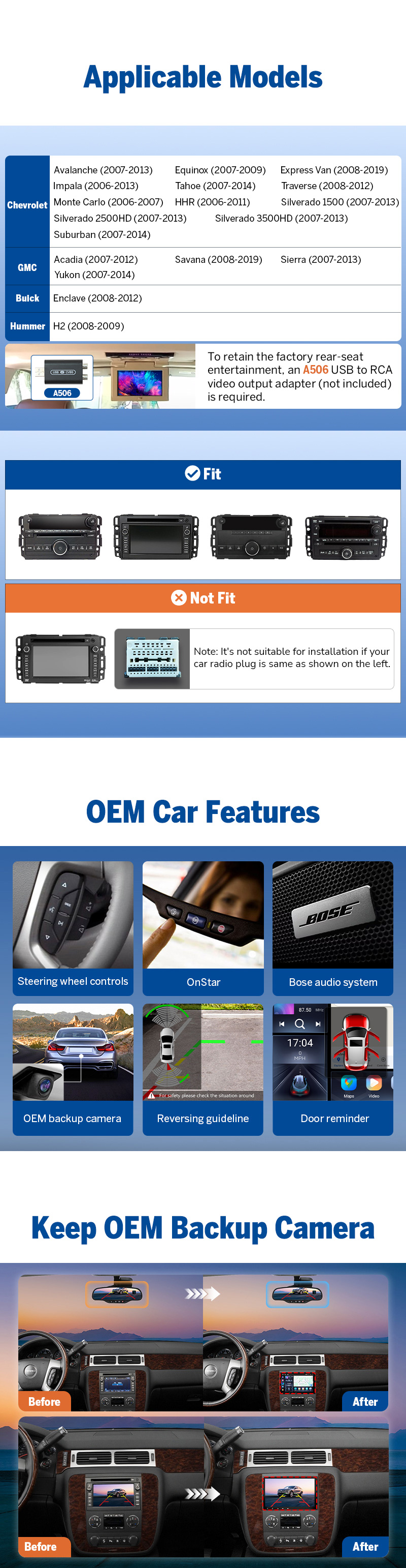 Retains steering wheel controls, OnStar, factory Bose amp, Door reminder, reversing guideline & CANBUS data