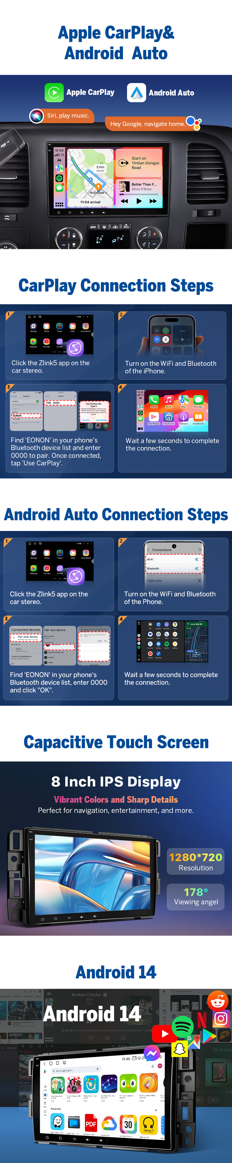 π₯ Eonon GMX7 Android 14 Car Stereo – Plug & Play for GM Vehicles 8" IPS HD Touchscreen | Wireless Apple CarPlay & Android Auto | DSP Audio | GPS Navigation | WiFi 6 | Bluetooth 5.4 | Factory Feature Retention