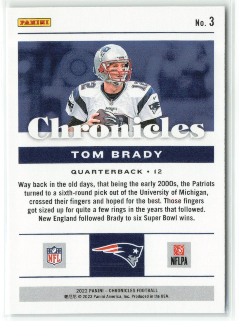 | Tom Brady 2022 Panini Chronicles New England Patriots #3 | ||||||||||||||||