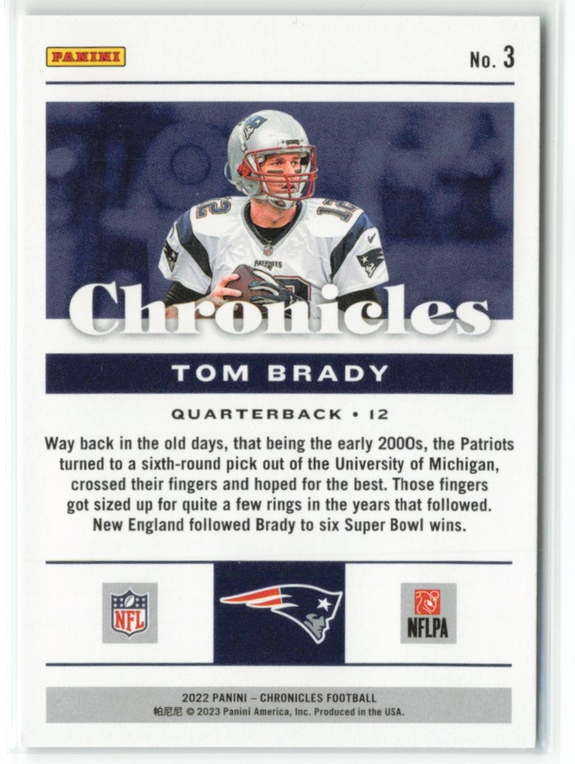 | Tom Brady 2022 Panini Chronicles New England Patriots #3 | ||||||||||||||||