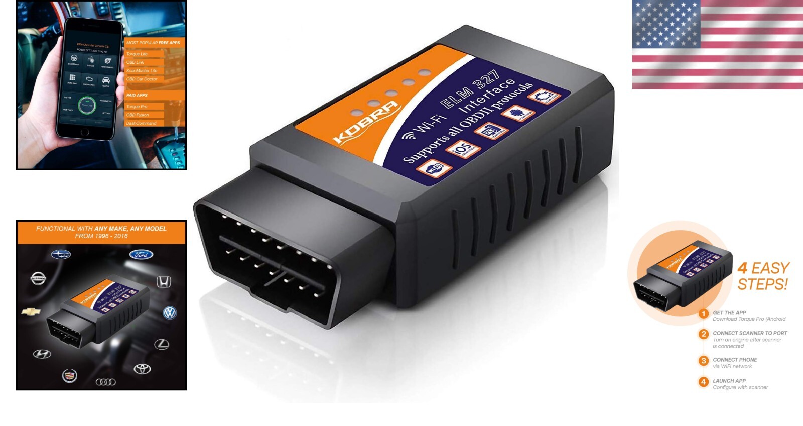 Diverse Compatibility: Works seamlessly with all vehicles from 1996 to 2016, compatible with popular apps such as OBD Fusion, DashCommand, and Torque.