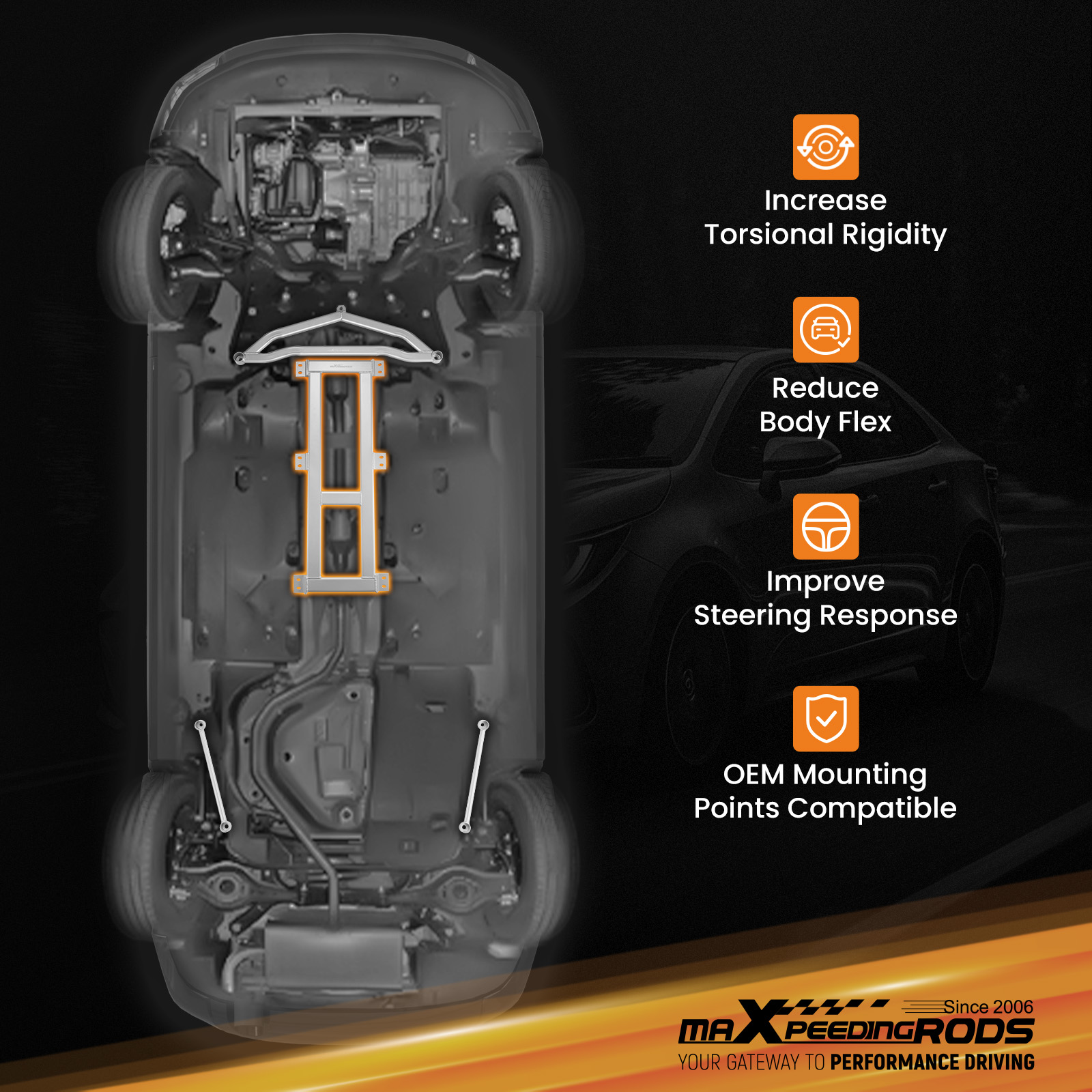 6-Point Middle Lower Brace Bracket fits for Toyota Corolla Levin C-HR 2018-2024