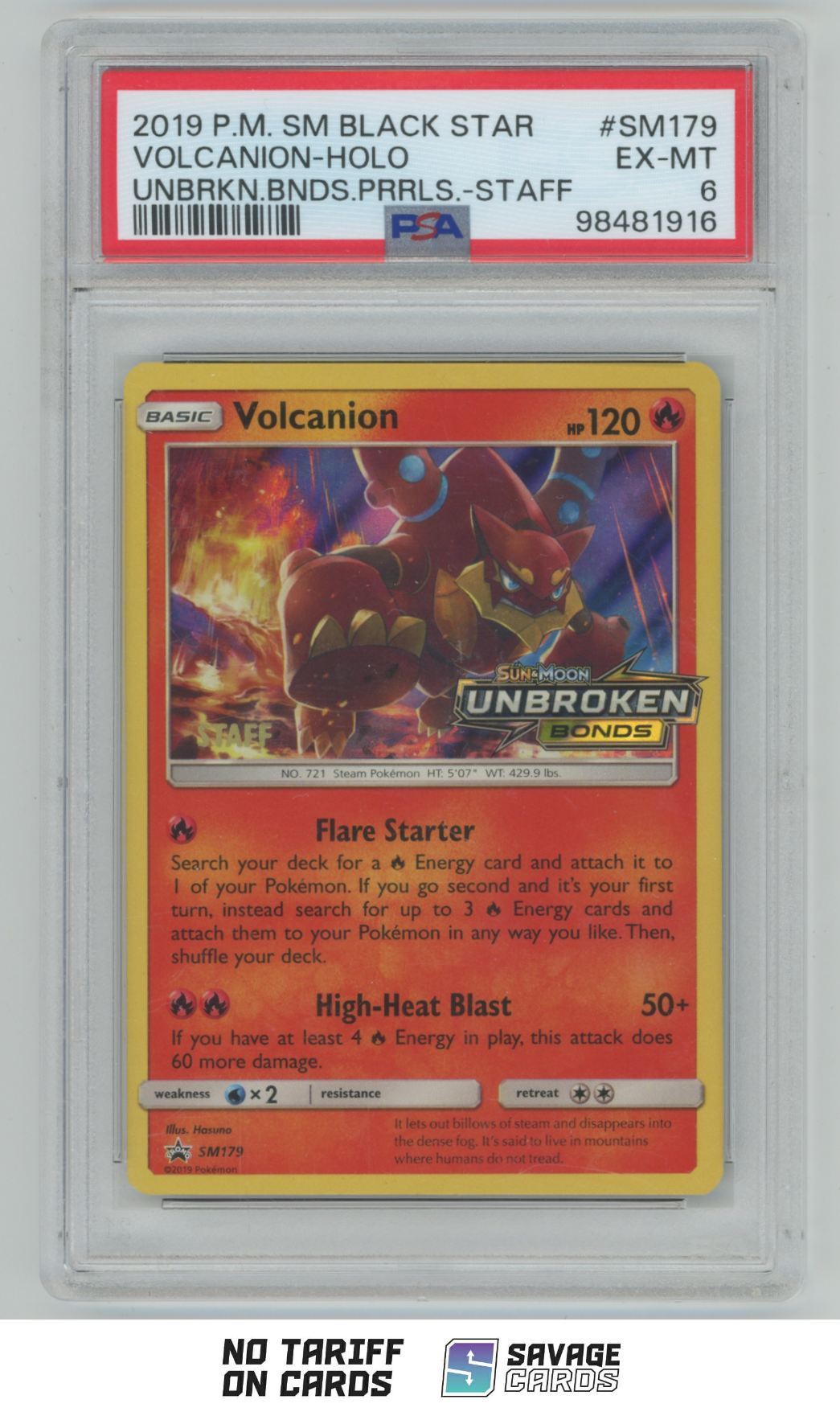 | 2019 Pokemon S&M BSP Unbroken Bonds Prerelease Staff Holo Volcanion PSA 6 #SM179 | ||||||||||||||||