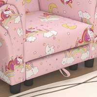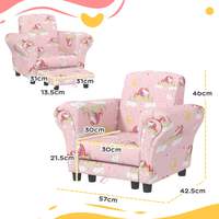 Transform your little kids space with the AIYAPLAY kids sofa set, featuring a charming unicorn print. This two-piece set includes a comfy kids armchair and a clever mini sofa stool that tucks away for easy storage. Crafted with soft fabric, padded sponge and stable wood, it's a delightful addition for any toddler's play area or bedroom. Suitable for children aged 1.5-3 years.