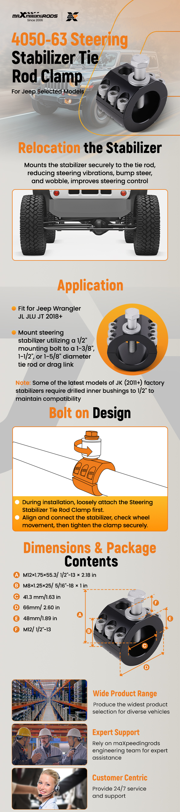 *Bolt On: The stabilizer clip is 100% bolted and utilizes the factory installed position on the vehicle's factory tie rod. The installation can be easily completed with only some basic manual tools.