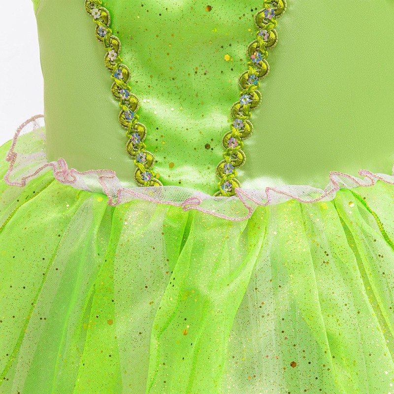 The tutu-style skirt is full and ruffle, creating a princess-like silhouette that little girls will adore.