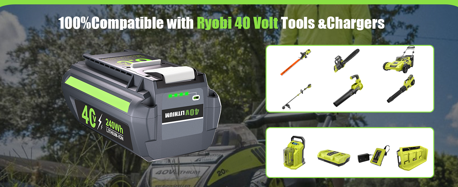 Compatible for Ryobi 40-Volt Charger:· OP400, OP400A, OP401, OP403, OP403A, OP404A, OP406A, ZROP401