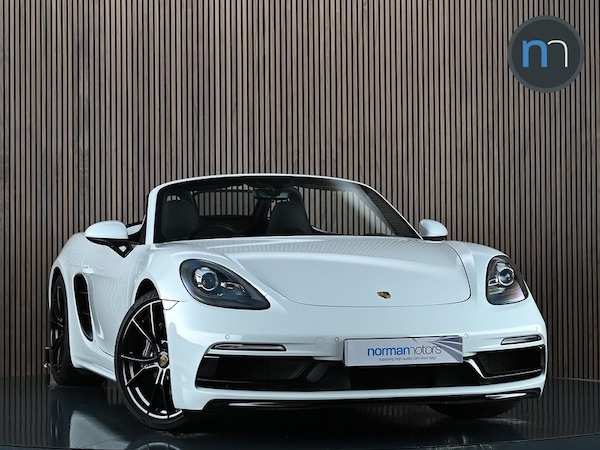 Norman Motors are excited to showcase this luxurious Porsche 718 Boxster 2.0T Convertible which boasts over £14,700 worth of optional extras & Full Service History including recent major service. Presented in striking White with Heated Black Leather Upholstery. Upgrades and features of this impressive vehicle includes: 20"" Carrera S Alloy Wheels, Sport Chrono Package including Mode Switch, SportDesign Package Painted in Black, Porsche Active Suspension Management, Porsche Communication Management - Including Navigation, Porsche Stability Management, Porsche Side Impact Protection, Switchable Sports Exhaust System in Black, BOSE Speaker System, Rear View Camera, Front and Rear Park Assist, Heated Seating, Heated Multifunction Steering Wheel, Electrical 2 Way Sports Seats, Two Zone Automatic Climate Control, Bi-Xenon Headlights with Integrated LED Daytime Running Lights, LED Tail Lights, Cruise Control.If you have any questions regarding history, condition, or specification of this vehicle, please get in touch with a member of the sales team..Cruise Control,BOSE Surround Sound System,Sport Chrono Package including Mode Switch,ParkAssist - Front and Rear with Reversing Camera,Park Assist - Front and Rear,Seat Heating,PASM - Porsche Active Suspension Management,20in Alloy Wheels - Carrera S,White,Sports Exhaust System in Black,SportDesign Package Painted in Black - High-Gloss,Heated Multifunction Steering Wheel,Wheels Painted in High Gloss Black,Roll-Over Bars Painted in Exterior Colour,Partial Leather with Leather Interior - Black,Two-Zone Automatic Climate Control,Leather Interior Package - with Leather Interior, 12-Volt Socket in Passenger Footwell, Connect Plus, Digital Radio, Instrument Cluster with Central Rev Counter and High Resolution 4.6inch Colour Display, Integrated 4G-LTE Compatible SIM, PCM - Porsche Communication Management - Include Navigation, Sound Package Plus, Digital Displays for Vehicle Speed - Chosen Gear - Odometer - Trip Odometer and Clock, SPORT Button to Activate Dynamic Driving Setting for Engine and Transmission, Tyre Pressure Monitoring - TPM, 18in Alloy Wheels - Boxster, Anti-Theft Wheel Bolts, Automatically Extending Rear Wing, Brake Calipers - Black, Convertible Top Colour - Black, Electric Windows Lifts with One Touch Operation and Door-Seal Protection, Electrically Adjustable Heated Exterior Mirrors on Door Waist Rails - Aspherical on Drivers Side, Electrically Operated - Fully Automatic Fabric Hood with Rigid Glass Rear Screen, Green Tinted Heat-Insulating Glass, Heated Rear Screen, Net Wind Deflector, PORSCHE Logo on Accent Strip and Model Designation in High-Gloss Chrome on Rear End, Separate Auxiliary Lights in the Front End with LED Indicators and Position Lights, Twin-Tract Exhaust System with Central Tailpipe in Stainless Steel, Tyre Sealing Compound and Electric Air Compressor, Windscreen Washer System with Two Wiper Speeds and Washer Jets, Windscreen with Top-Tint, Automatic Headlight Activation including Welcome Home Lighting, Bi-Xenon Headlights with Integrated LED Daytime Running Lights, LED Tail Lights with Integrated Four-Point Brake Lights and Reversing Lights, Adjustable Fan with Air Recirculation and Defroster Functions, Air Conditioning with Integrated Active Carbon Filter, Clothes Hooks on Seat Backrests, Door Sill Guards - Model Designation Logo, Elevated Centre Console with an Open Storage Compartment and a Closed Storage Compartment, Floor Mats, Hood Lining in Black Fabric, Instrument Dials and Rev Counter in Black, LED Reading Lights, Luggage Compartments at Front and Rear, Smooth-Finish Leather on Steering Wheel Rim - Gear Lever and Door Handles, Sports Seats - Electrical 2 Way, Sports Steering Wheel - Diameter 375mm with Manual Fore-Aft and Height Adjustment, Storage Compartment in Each Door, Two Individual Cupholders, Electromechanical Power Steering with Variable Steering Ratio and Steering Pulse Generator, Anti-Theft System including Radar Passenger-compartment Monitoring, Electric Parking Brake, Engine Immobiliser with in-Key Transponder - Central Locking with Remote Control, Full Size Airbags for Driver and Front Passenger, Porsche Side Impact Protection - POSIP, Porsche Stability Management - PSM with ABS with Advance Brake Functions