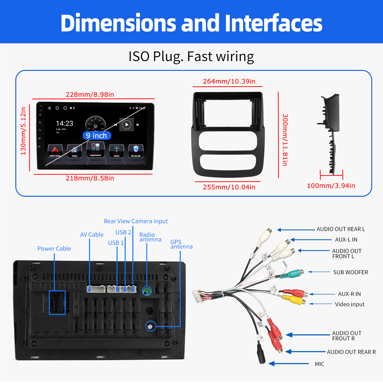 RDS/FM Radio and Bluetooth and ASP Sound: Supports Bluetooth 4.1, with built-in microphone so you can make hands-free calls while driving. Support access to phone book, music playback interface, etc. RDS supported. You can save 18 FM radio stations. Built-in ASP chip. Supports 32-band EQ setting, which can be adjusted according to your personal preference. Which is very similar to your original sound. 4 x 45W amplifier, surround sound and subwoofer output