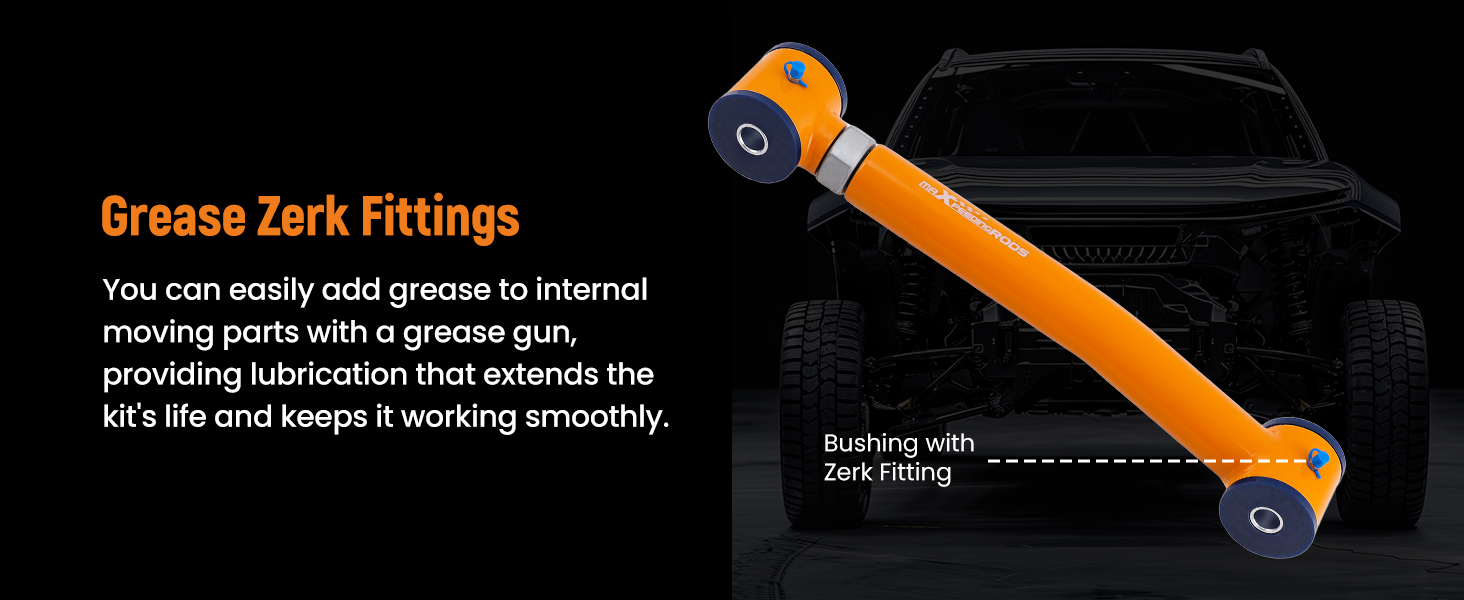 - Bushing: Poly w/ Zerk Fitting