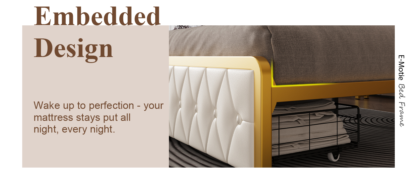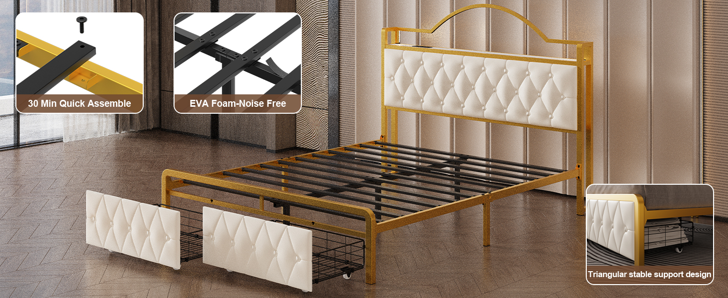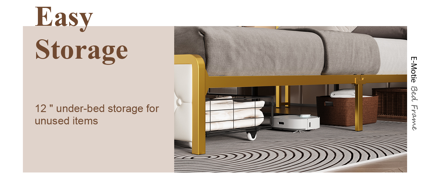 3. Maximize space with this platform bed's ingenious storage. Beyond the 10.2-inch clearance, two large Storage Drawers (25L each) easily hold bedding, clothes, or seasonal items. The smooth, quiet glide system keeps your Full or Queen size bedroom organized and clutter-free.
