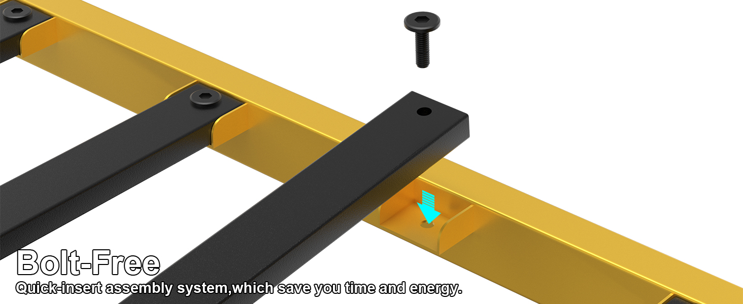 5. Engineered for serene stability, this platform bed features a heavy-duty metal frame supporting up to 1100 lbs. With noise-reducing design, reinforced beams, and silent EVA feet, it operates below 20dB. The Full or Queen size option includes a pre-sorted screw kit and tools for a 30-minute, two-person assembly.