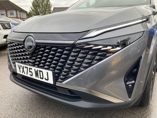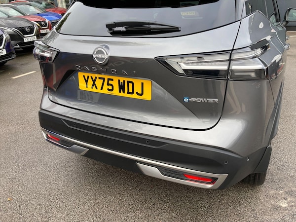 YX75WDJ. £12,013 DEMONSTRATOR SAVING vs MRRP £39,503 including accessories fitted worth £678 consisting of Protection Pack (£320) + Door Edge Protectors (£44) + Screen Protector (£49) + Integrated Front Dash Cam (£265). As this is a demonstrator, please contact us for exact mileage. This 2025 Nissan Qashqai N-Connecta e-POWER is a Nissan manufacturer approved vehicle with only one owner from new. It features a 1.5 litre petrol hybrid engine and meets Euro 6 emission standards. Notable features include the Glass Roof Pack with a fixed panoramic sunroof, LED headlights, and ProPILOT Assist with Navi-Link and Head Up Display for enhanced driving assistance. You'll also benefit from Intelligent Cruise Control and Intelligent Key for keyless entry, all contributing to a refined driving experience.This Qashqai e-POWER offers impressive performance, accelerating from 0 to 62 mph in just 7.9 seconds. Its fuel economy is a highlight, achieving up to 54 mpg, and it boasts low CO2 emissions, making it a more environmentally conscious choice. The generous boot space ensures practicality for all your needs, demonstrating how this vehicle excels compared to others in its class.