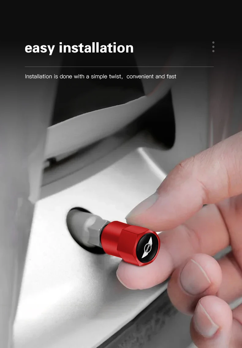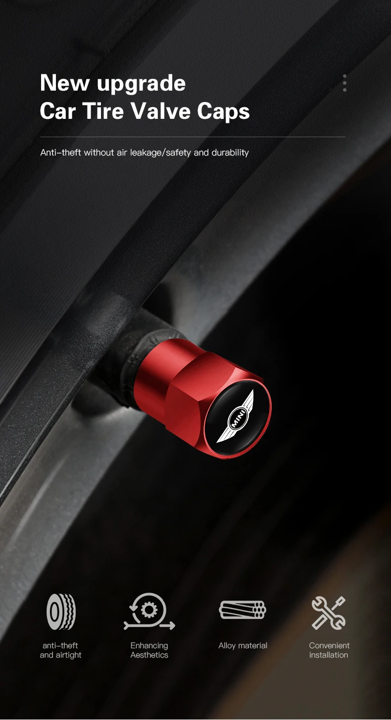 4Pcs 3D Metal Tire Valve Cap Car Tyre Air Stem Cover For Mini Cooper JCW Works F54 F55 F56 F57 F60 R50 R52 R53 R55 R56 R57 R58 R59 R60 R61 Cabrio Aceman Hatch Countryman Paceman Clubman Coupe Roadster