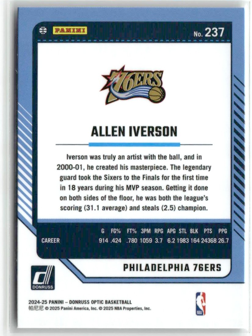 | Allen Iverson 2024-25 Donruss Optic Philadelphia 76ers #237 | ||||||||||||||||