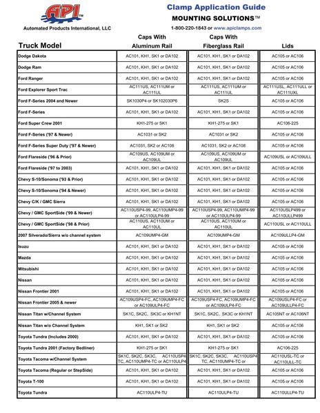 Install your truck cap or camper shell securely with 4 of these strong mounting clamps on a short bed (6 clamps on long beds). Please see the product drawing for matching dimension specifications. Topper Tape is recommended for sealing between the truck bed and the cover.